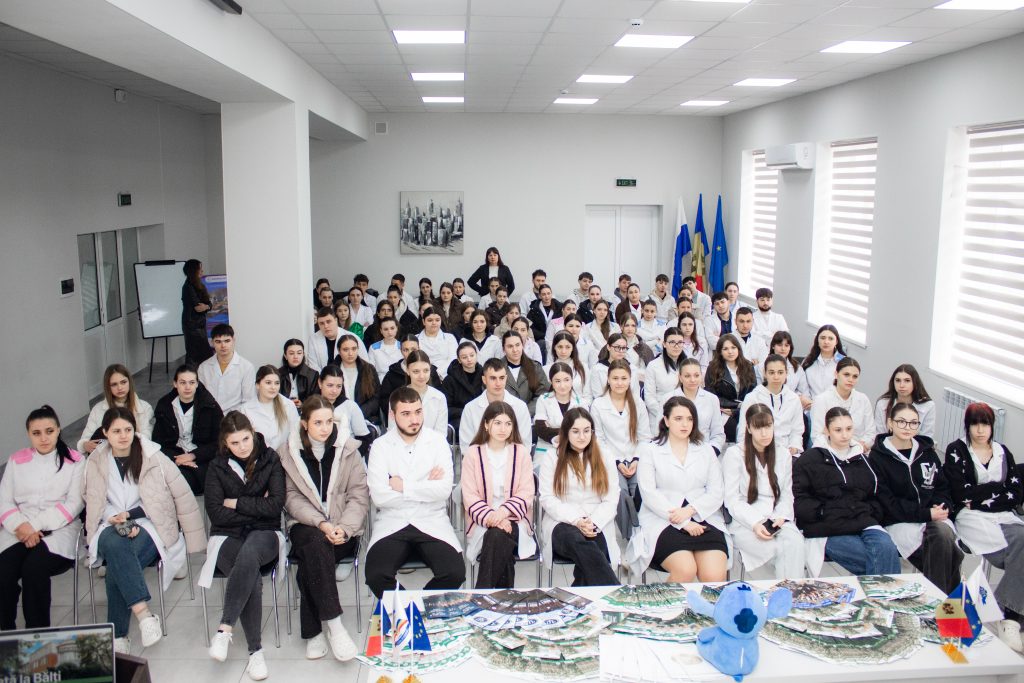 Astăzi, 2 aprilie, echipa Universității de Stat „Alecu Russo” din Bălți a vizitat Colegiul de Medicină din Bălți, unde a interacționat cu elevii din anii absolvenți, în cadrul unei noi activități de orientare în carieră. Evenimentul face parte din Campania Națională „Învață în Moldova”, inițiată de Ministerul Educației și Cercetării al Republicii Moldova, care promovează continuarea studiilor în instituțiile de învățământ superior din țară.